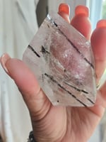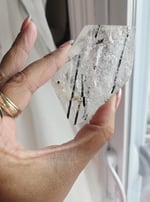 Black tourmaline in quartz, Crystal freeform, Crystal gift decor, Tourmaline in quartz, also known as tourmaline in quartz, symbolizes balance, purification, and protection by combining the energies of Black Tourmaline and Clear Quartz.