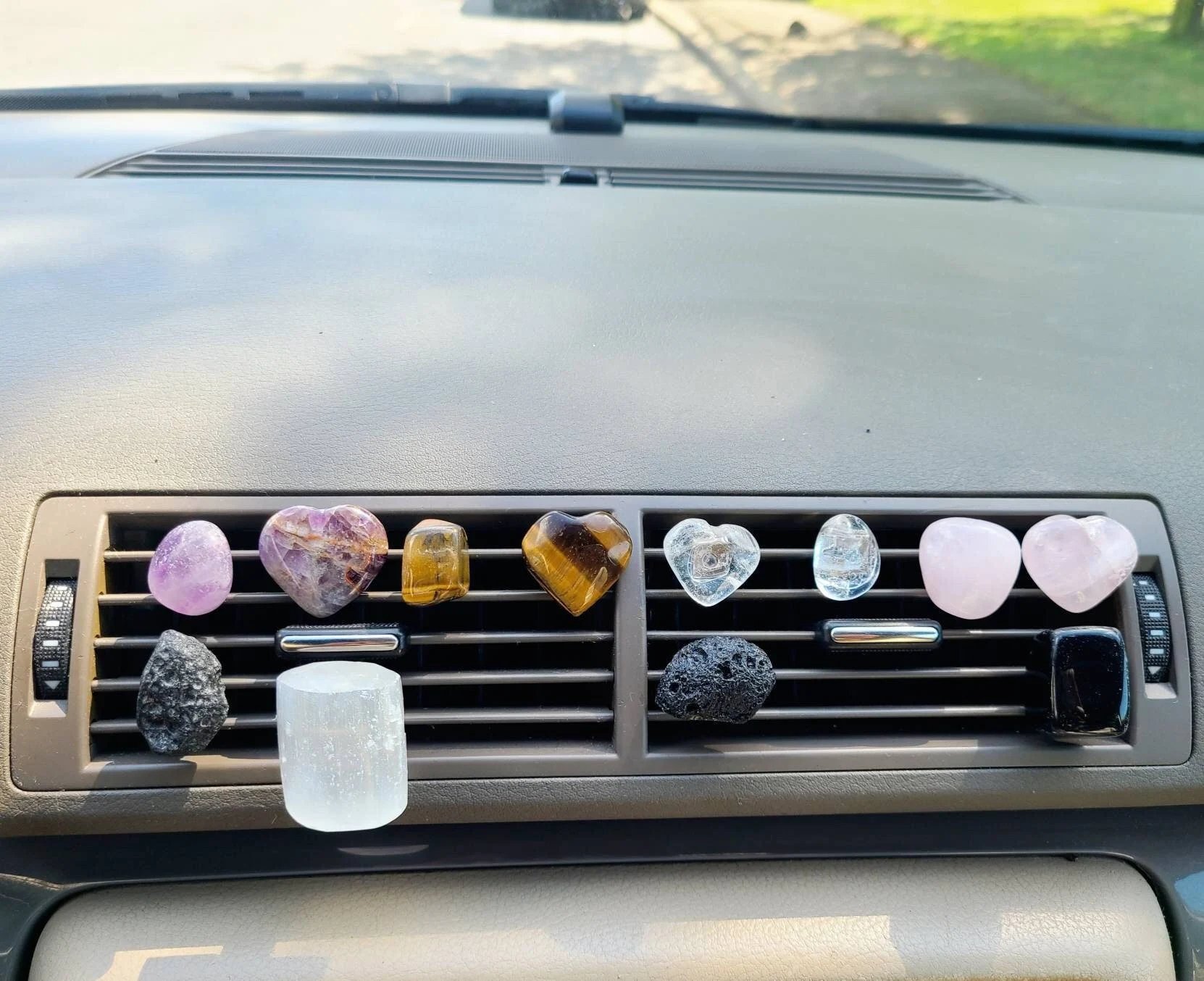 Material: Healing crystals and Stones: Amethyst, Clear quartz, Black obsidian, Tiger eye, Selenite, Rose quartz, Red jasper, Green aventurine, Tektite, Opalite, Lapis lazuli.