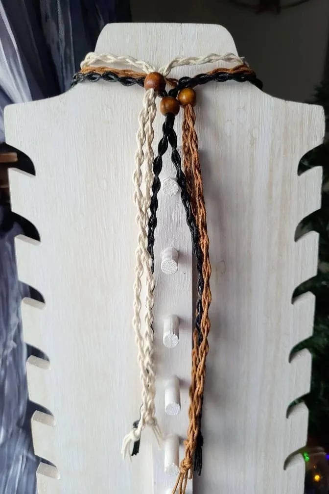 These pouch are boho style, Available in 3 colors and 3 different stones, These are adjustable with a wood bead so you can wear it short or Long as desired.
